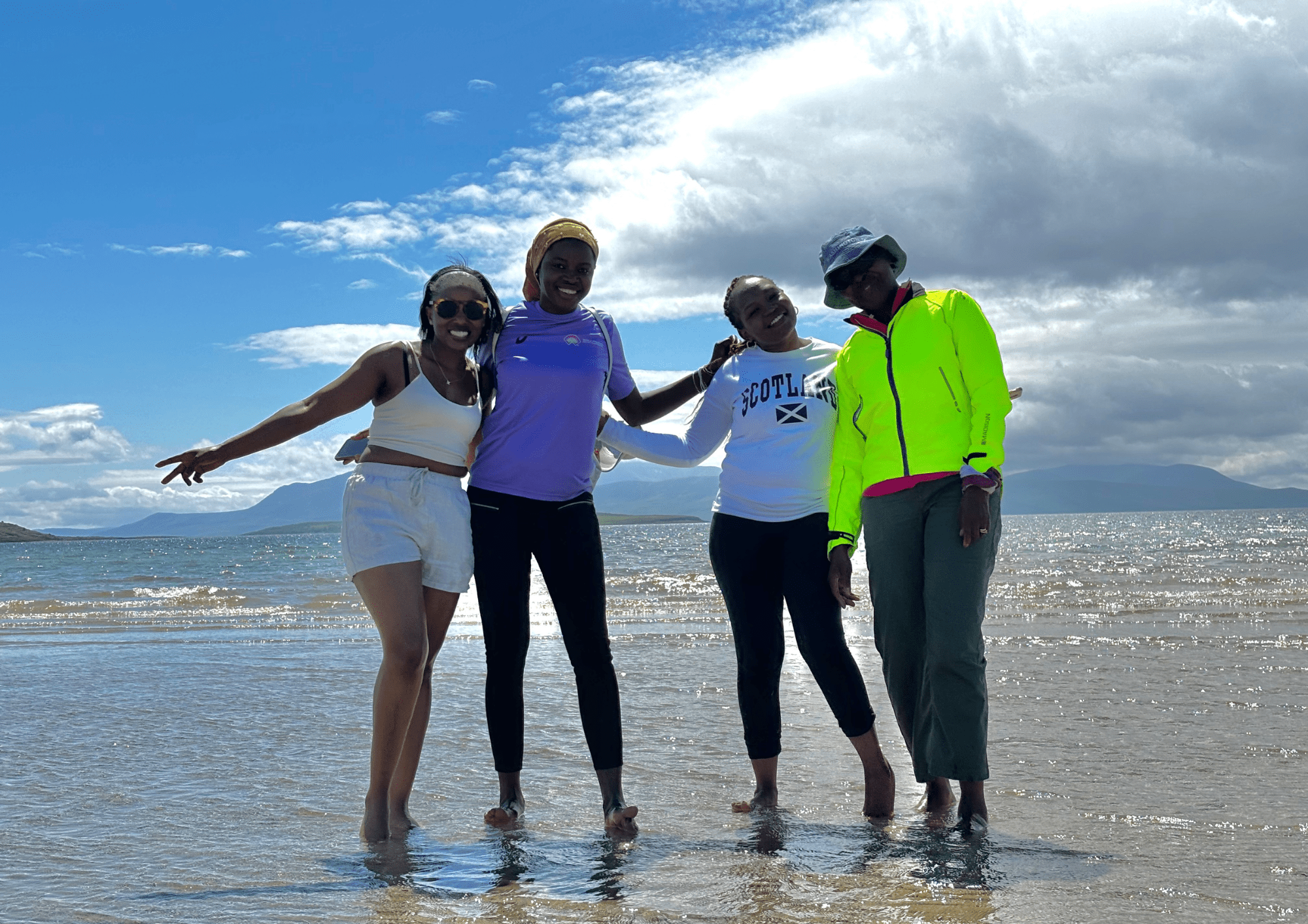 Sandrine, Hawa, Rose and Rosemary enjoying a sunny day at the beach